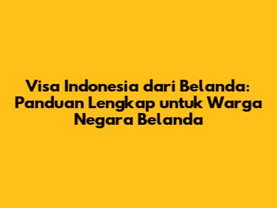 Visa Indonesia Dari Belanda: Panduan Lengkap